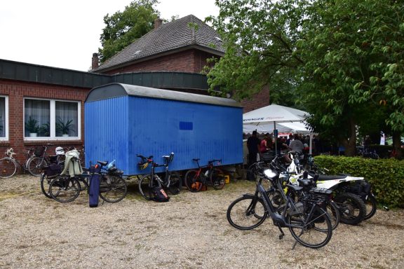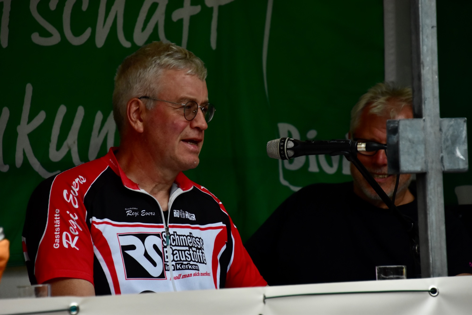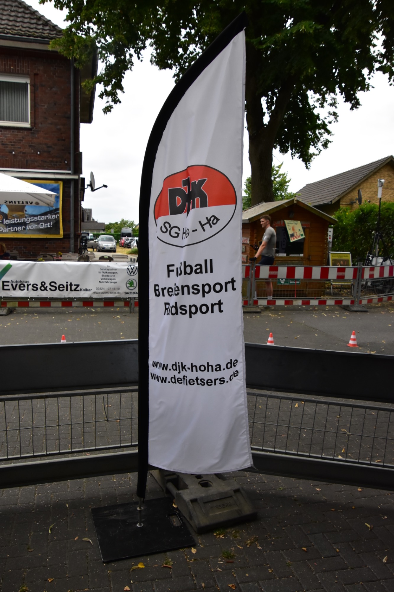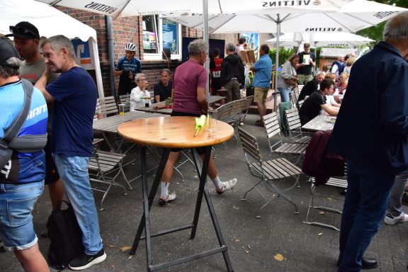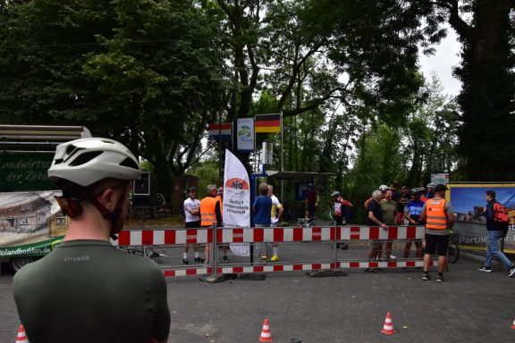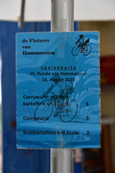 Die Planung der letzten Runde von Hommersum gestaltete sich zunächst etwas problematisch, zumal lange nicht feststand, ob wir das Gelände und die Gaststätte „Regi“ nutzen konnten. Der letzte Wirt und Verantwortliche hatte uns zwar zugesagt, dass „alles gehen“ würde, war aber zum fraglichen Zeitpunkt krankheitsbedingt nicht vor Ort. Kurzfristig mussten wir noch eine Schankgenehmigung einholen, weil der Wirt nicht vor Ort war. Auch die Stadt Goch setzte uns eine zusätzliche Hürde: konnten in den vergangenen Jahren Verkehrszeichen zum Absperren der Strecke „frei“ gesetzt werden, so war in 2024 erstmals eine RSA21-Bescheinigung (Richtlinien zur verkehrsrechtlichen Sicherung von Arbeitsstellen an Straßen - gilt nicht nur für Arbeitsstellen sondern auch für Veranstaltungen im öffentlichen Verkehrsraum) erforderlich. Im Klartext bedeutete das, dass eine Person gesucht wurde, die die Beschilderung auf ihre Richtigkeit überprüft und letztlich auch dafür verantwortlich ist. Dementsprechend musste jemand gefunden werden, der/die eine solche Bescheinigung erwarb um diese Prüfung durchführen zu können. Auch diese Hürde konnte genommen werden, so dass der Durchführung des Zeitfahrens nichts mehr im Wege stand:
