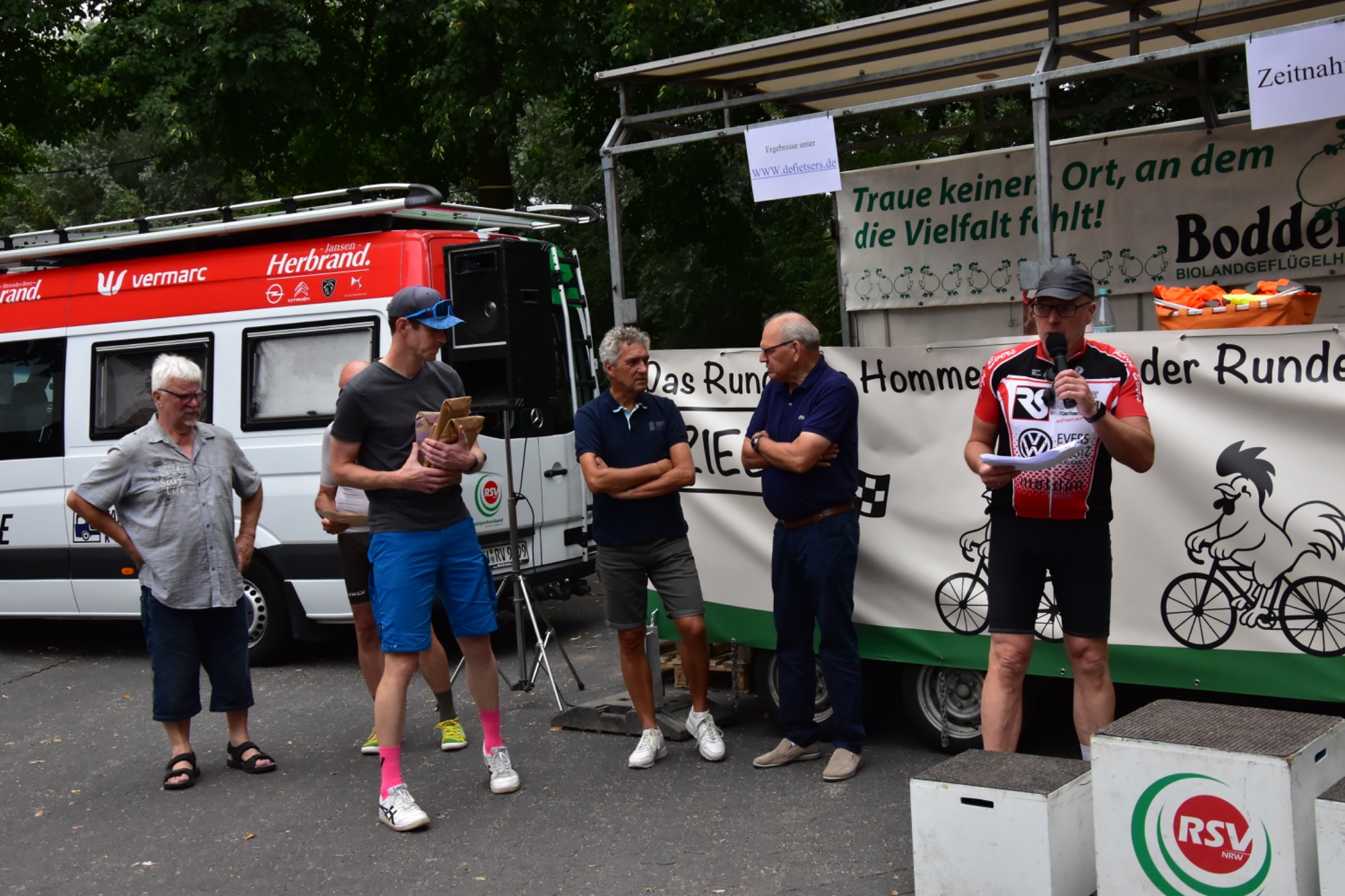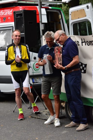 Aber in diesem Jahr wurde auch erstmalig auf unserem dörflichen Straßenkurs ein Amateurradrennen ausgetragen. Nämlich die NRW-Meisterschaften in den Klassen Master 2-4: